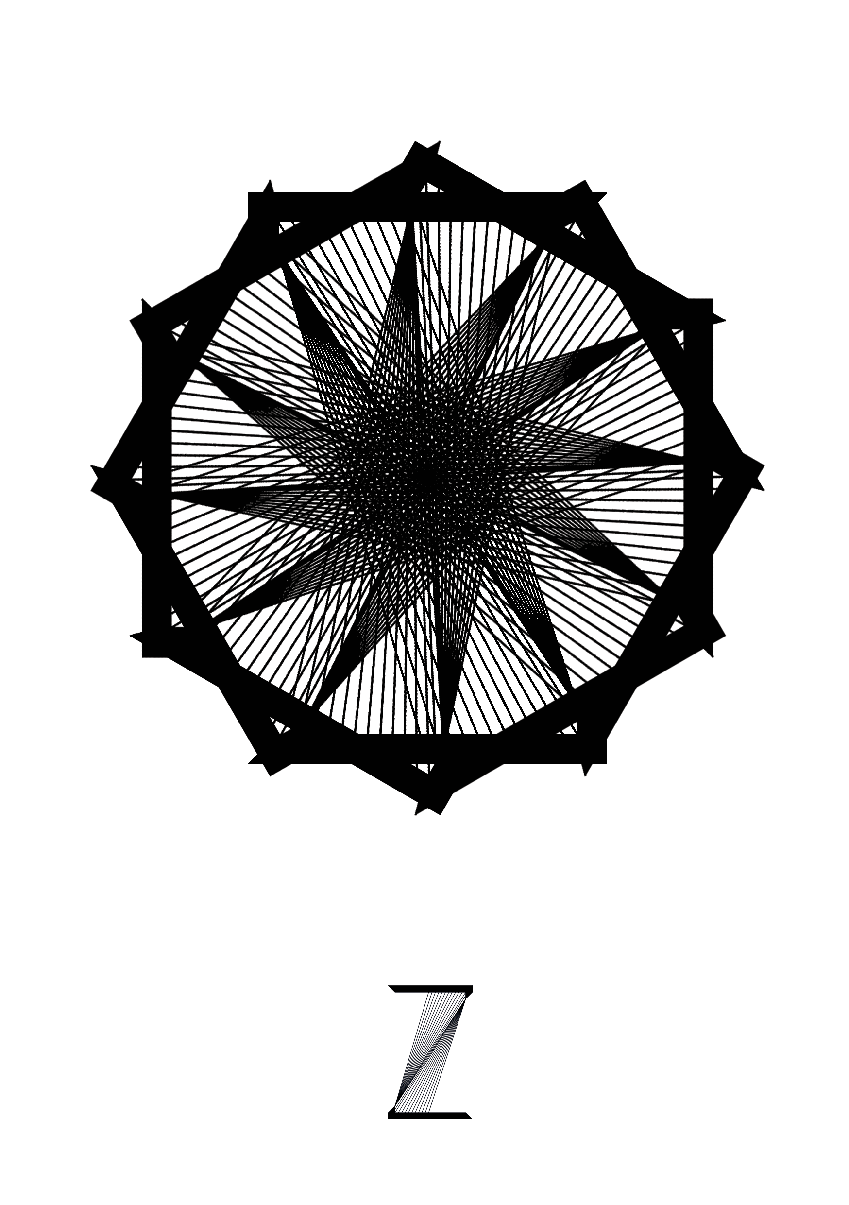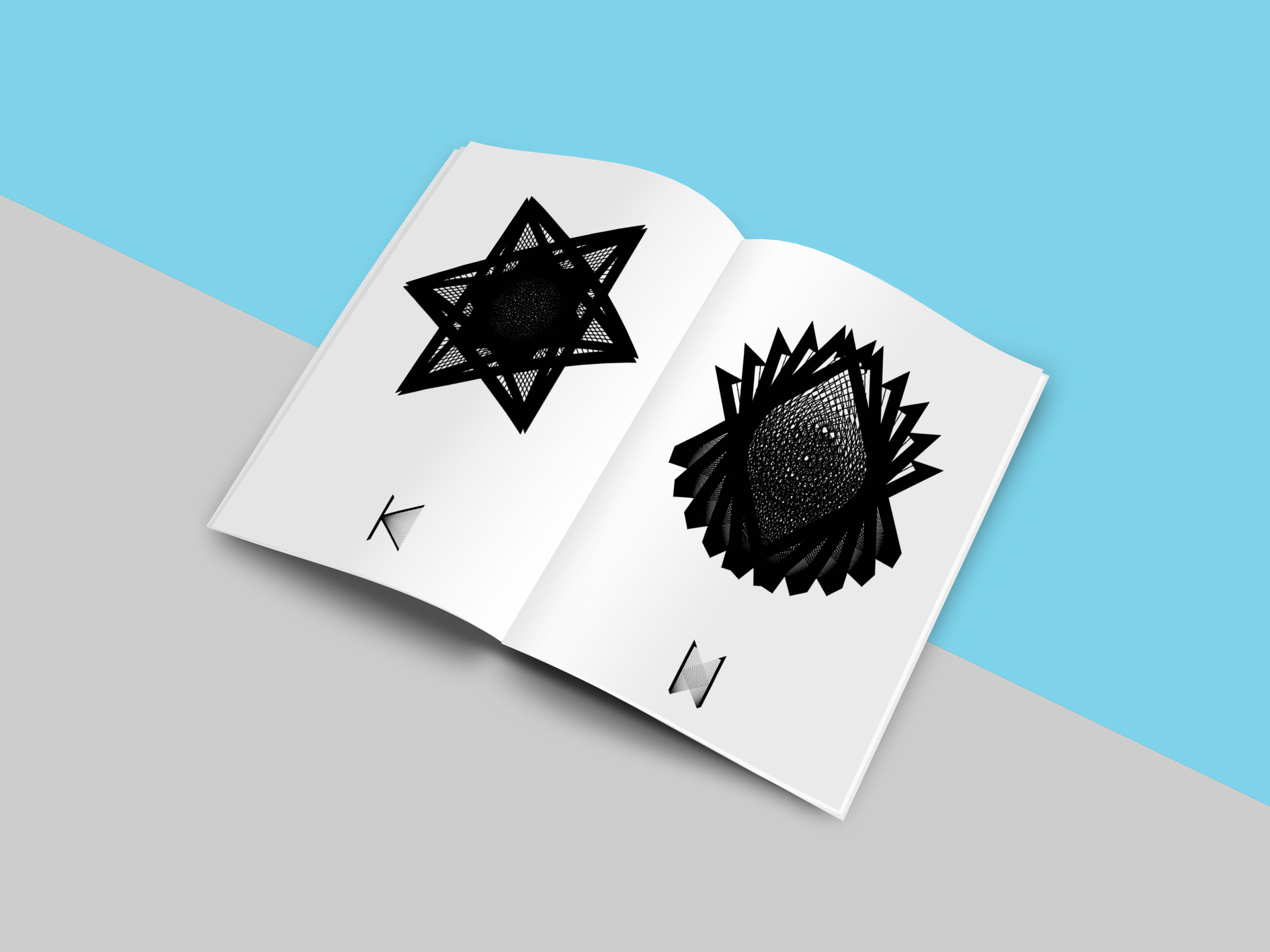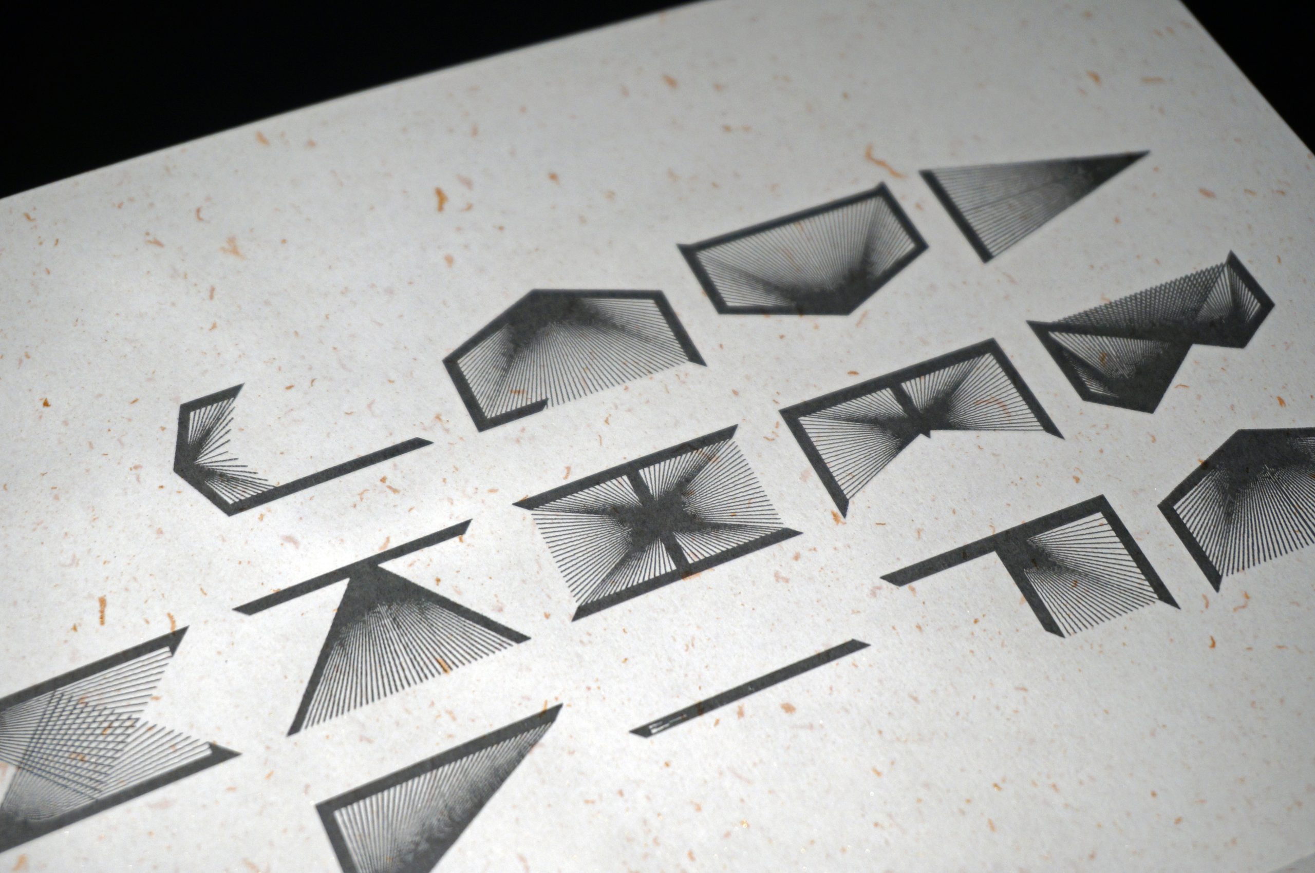 Plusieurs caractères typographiques ont été déclinés sous forme de livret permettant, par un jeu de superposition, de créer des formes abstraites évoquant les astres.